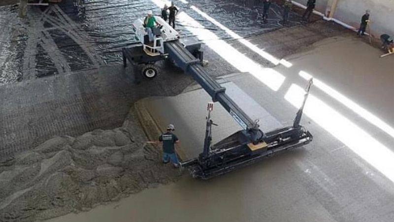 Piso de Fibra Sintética estrutural e tela soldada (h = 18 cm) Equipamentos utilizados: Laser Screed, Spreader e Acabadoras duplas Santa Gertrudes–SP
